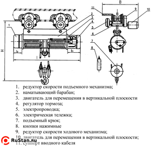 TOR Таль электрическая TOR ТЭК CD г/п 10,0 т 6 м (модель