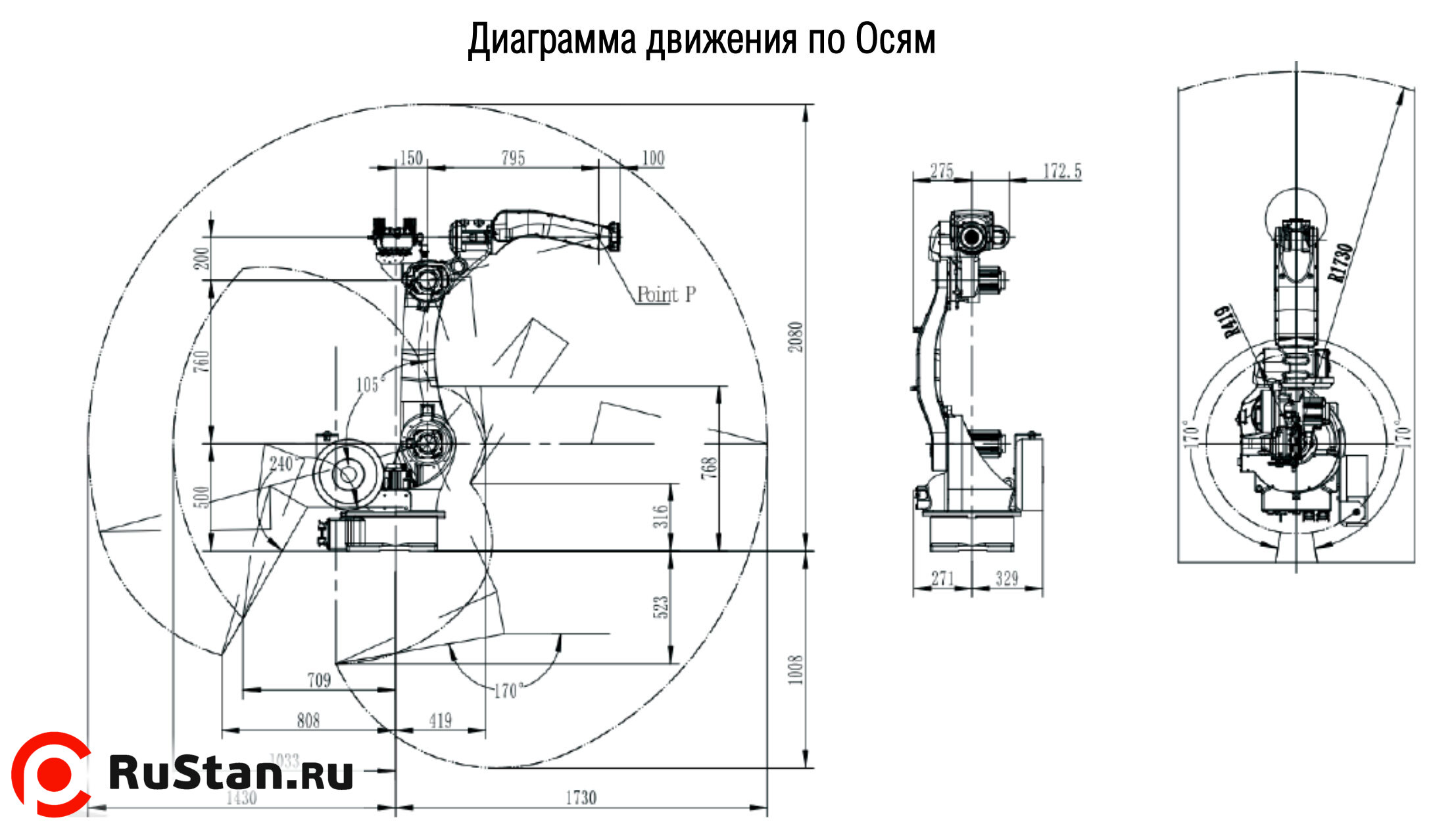 | Движение по Осям | J1 | K полу или потолку -165°~165°, настенное -30°~30° |