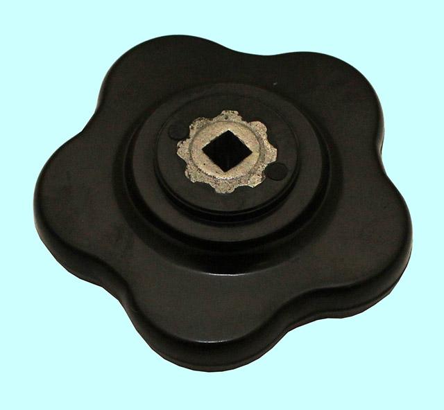 Ручка 60х(6х6)х20мм (DxSxH) лепестковая со сквозным квадратным отверстием, бакелит "TLX"