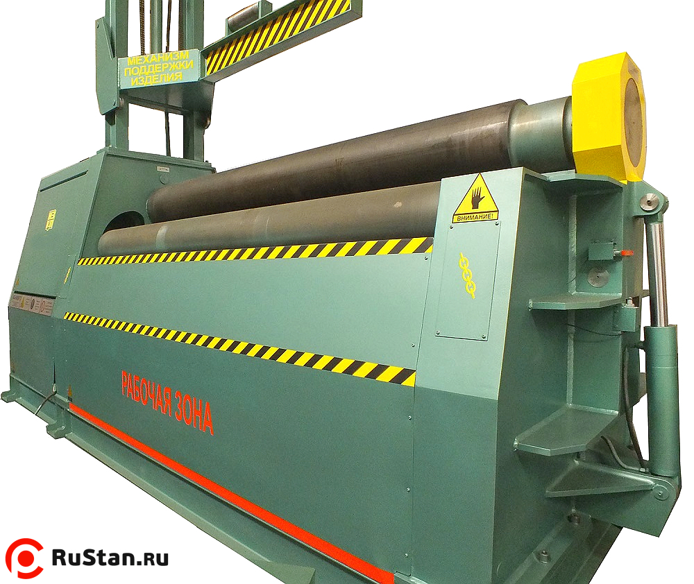 Данный тип листогибочных машин (вальцев) позволяет более точно работать с подгибкой кромок обечаек что значительно сокращает количество листового металла попадающего в отход. Также наличие четвертого валка позволяет практически исключить проскальзывание листового металла в процессе гибки.