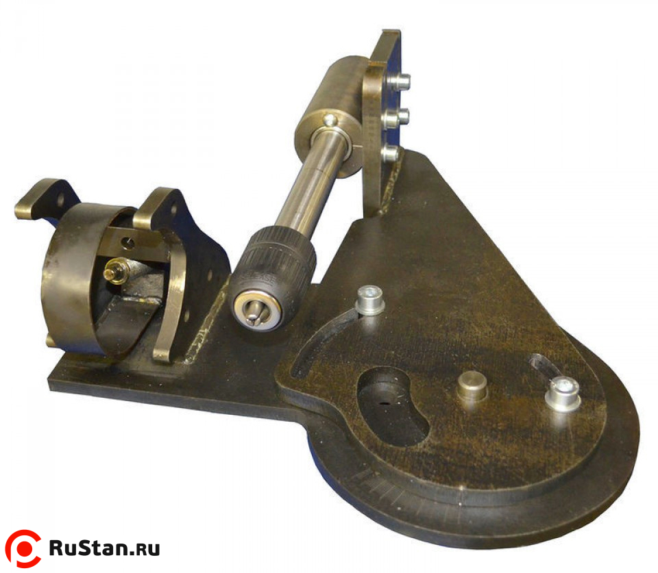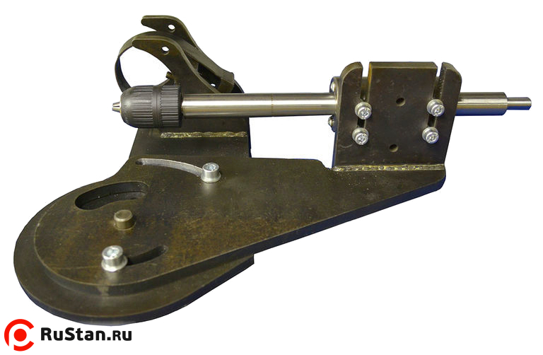 DT-80 крепится к любому верстаку и имеет хвостовик для присоединения электродрели с одной стороны, а также трехкулачковый патрон для режущего инструмента.