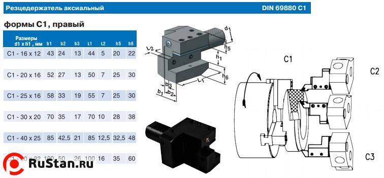 Резцедержатель аксиальный правый (тип С1) с хвостовиком VDI 3425 по DIN 69880 (ГОСТ 24900-81).