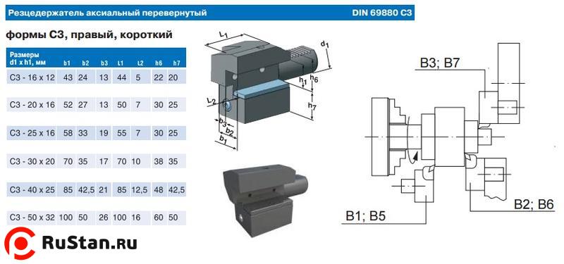 Резцедержатель аксиальный перевернутый правый (тип С3) короткий с хвостовиком VDI 3425 по DIN 69880 (ГОСТ 24900-81).