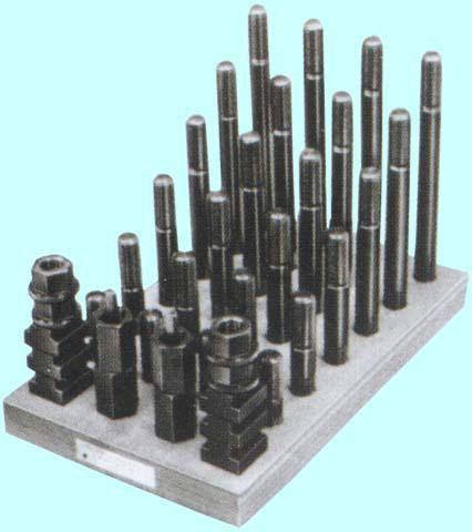 Набор предназначен для фиксации заготовок, деталей сложной формы при дальнейшей обработке на фрезерных, сверлильных и других станках , имеющих ширину паза 13.7-14мм на столе. В набор клиновых прижимов входят: Сухари (резьба М10х1,5) для станочных пазов 13.7мм - 6 шт. Гайка М10х1,5 с буртиком - 4 шт. Гайка М10х1,5 высокая - 4 шт. Клиновые опоры с рифлением - 6 шт. Прихват плоский с рифлением - 6 шт. Шпильки М10х1,5 длиной 75 мм - 4 шт. Шпильки М10х1,5 длиной 100 мм - 4 шт. Шпильки М10х1,5 длиной 125 мм - 4 шт. Шпильки М10х1,5 длиной 150 мм - 4 шт. Шпильки М10х1,5 длиной 175 мм - 4 шт. Шпильки М10х1,5 длиной 200 мм - 4 шт. Для удобства работы набор располагается на открытой деревянной подставке.