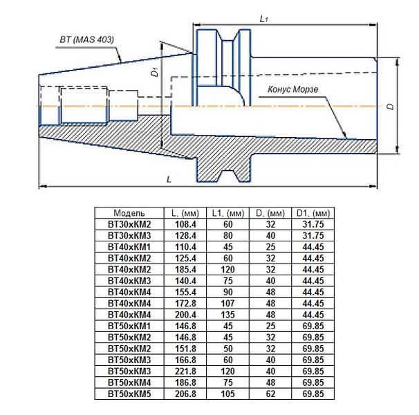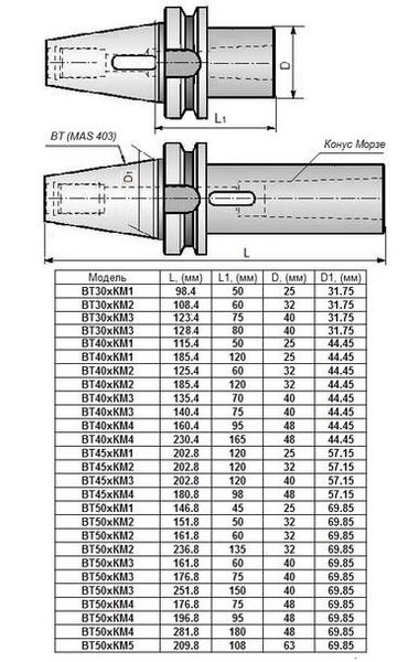 Хвостовик с конусом BT 7:24 (MAS403) - применяется на станках с автоматической сменой втулок и другого инструмента (с ЧПУ).