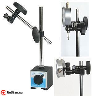Штатив предназначен для крепления индикаторов часового типа ИЧ как с ушком, так и без ушка при контрольных измерениях биений и линейных отклонений от заданных норм. Размер магнитной базы: 60х50х55мм. Диаметр отверстия под шток индикатора - 8мм Диаметр ушка индикатора - не менее 6мм. Усилие отрыва 80 кг. Размеры стоек 12х176мм и 10х150мм. Вес 1.4кг.