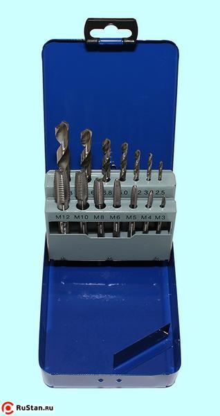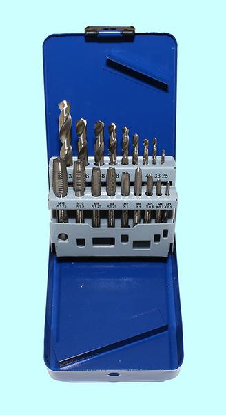 Набор резьбонарезной из  9 метчиков М3-М12 Р18 и  9 сверл d2.5-d10.3 Р18 в мет. коробке