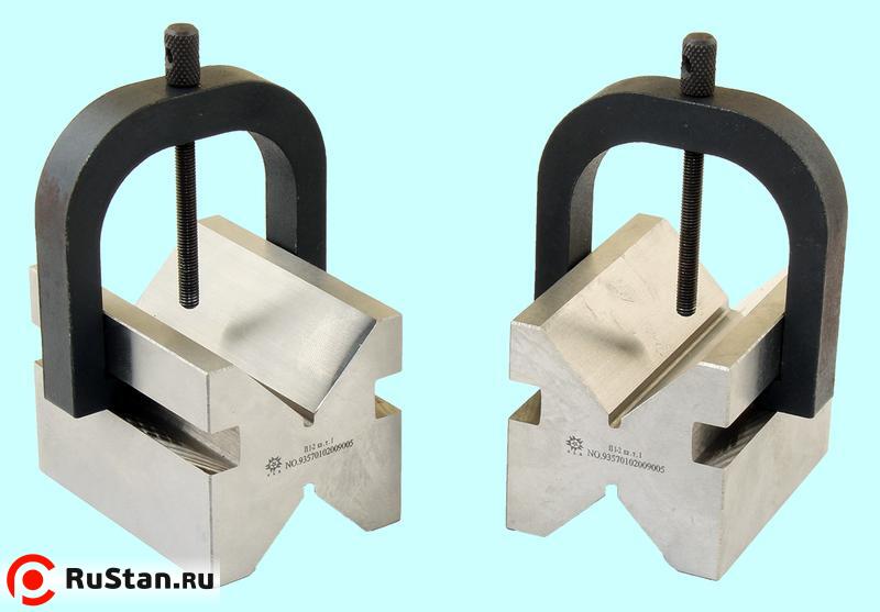 Призмы с двумя призматическими выемками и скобой для фиксации заготовки. Пределные отклонения от параллельности и перпендикулярности + - 0,01мм. Фиксация детали осуществляется при помощи скобы с центральным винтом.