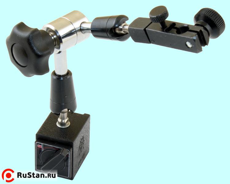 Универсальная головка позволяет закреплять индикатоные головки с диаметром штока 8мм с ушком и без ушка, а так же индикаторы типа ИРБ (ИРТ) с креплением типа "ласточкин хвост". Высота колонки - 54мм, длина консоли - 44мм, длина головки 75мм, магнитное основание - 36х30х35мм.
