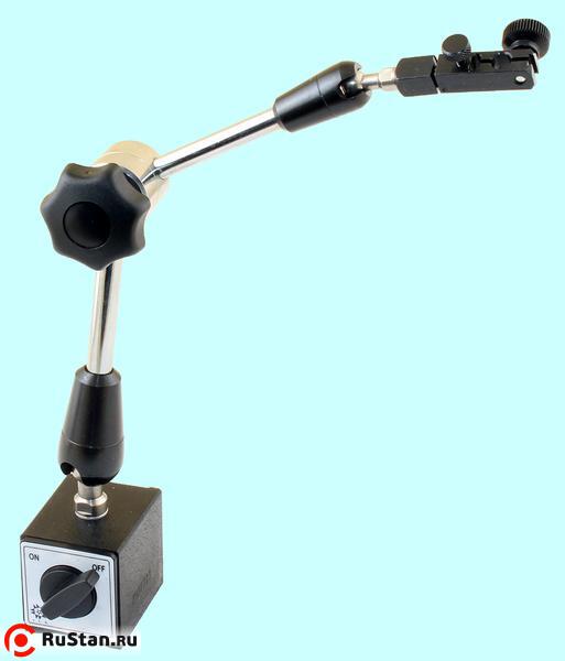 Универсальная головка позволяет закреплять индикатоные головки с диаметром штока 8мм с ушком и без ушка, а так же индикаторы типа ИРБ (ИРТ). Высота колонки - 135мм, длина консоли - 130мм, длина головки 75мм, магнитное основание - 60х50х55мм.