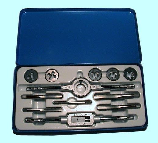 Вороток,плашкодерж-ль и по  5 метчиков и плашек М6-М12 в мет. коробке