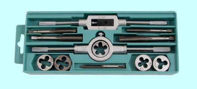 Вороток,плашкодерж-ль и по 5 метчиков и плашек М6-М12 в пласт. коробке (12 позиций)