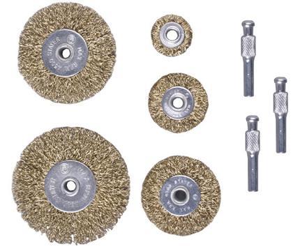 Набор щеток для дрели из 5-ти штук (25, 40, 50, 65, 75мм) +3 державки латунир. (А9001)