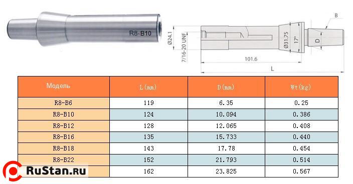 Хвостовик R8 (Bridgeport R8) - комбинированный конический хвостовик с внутренней резьбой 7/16"- 20UNF.