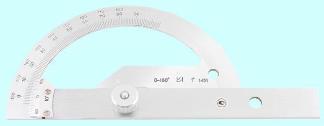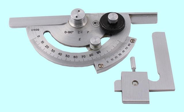 Предназначен для измерения углов режущих инструментов различных видов. Работа угломера основана на принципе действия массы маятника, жестко соединенного с показывающей стрелкой и имеющего общую с ней ось поворота. Углы поворота маятника отсчитываются с помощью стрелки по круговой шкале. В процессе измерения контрольная линейка угломера соприкасается с соответствующей поверхностью режущего инструмента. Угломер имеет устройство для фиксации положения стрелки.