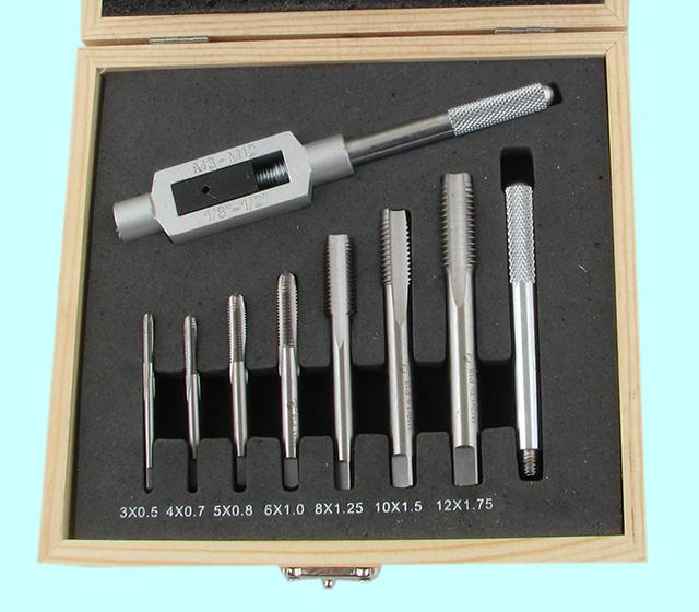 Вороток и 7 метчиков М3-М12 9ХС в дер. коробке "CNIC"