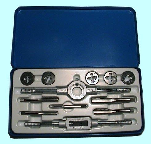 Вороток,плашкодерж-ль и по 7 метчиков и плашек М3-М12 в пласт. коробке (16 позиций)