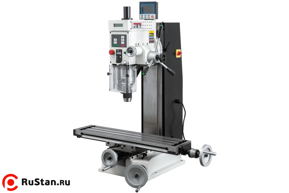 Сверлильно-фрезерный станок JMD-3T DRO представляет собой аналог модели станка JMD-3. Единственное отличие этой модели - увеличенная длина рабочего стола. Станок рассчитан на индивидуальное использование, может быть использован для мелкосерийных работ на производстве. Технически станок может быть подключен к электросети напряжением 230 В, используется для выполнения широкого спектра сверлильных и фрезерных работ. Благодаря наличию в двигателе функции реверса станок выполняет технологические операции по нарезанию резьбы. Высокое качество обработки обеспечивается цифровой индикацией вылета шпинделя и плавной регулировкой частоты вращения шпинделя.