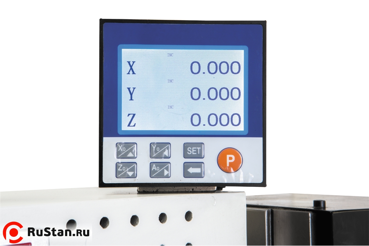 Показания перемещения по осям отображаются на устройстве цифровой индикации, УЦИ, которая работает в паре с 3мя магнитными линейками, благодаря которым гарантированная точность позиционирования составляет +/-5 мкм.