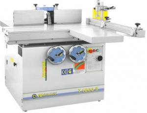 Фрезерный станок с шипорезной кареткой T 1000 S предназначен для выполнения разнообразных фрезерных работ по дереву по направляющим линейкам с ручной подачей (изготовление вагонки, половой доски, плинтуса, наличника, филенки и других столярных и мебельных изделий), зарезки простых шипов с помощью шипорезной каретки и криволинейного фрезерования по шаблону с ручной подачей.