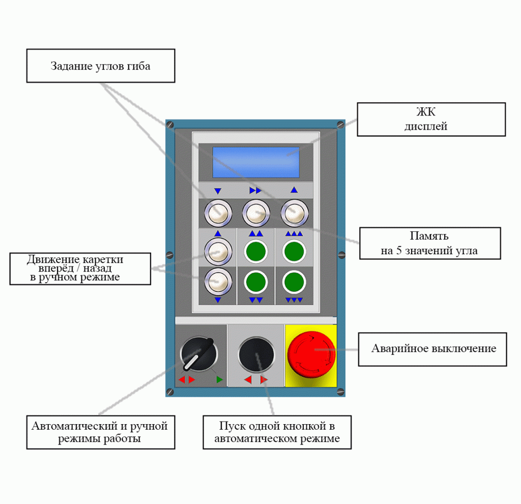 - Задание угла гиба на ЖК экране с помощью 2-х кнопок.
