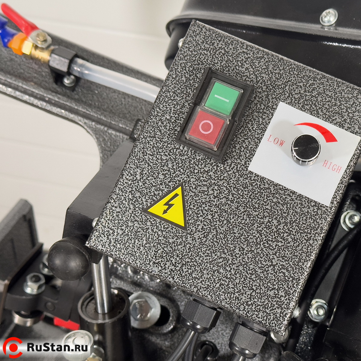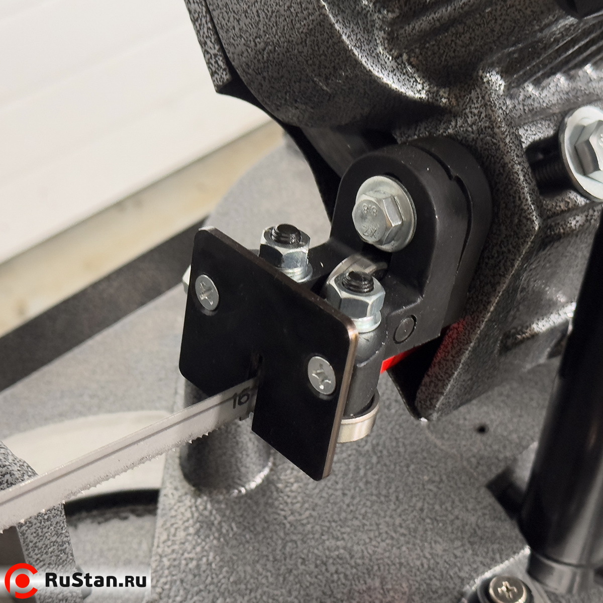 Заготовка фиксируется в регулируемых, быстрозажимных тисках. Скорость опускания пильного узла (скорость подачи) изменяется с помощью регулятора гидроцилиндра.