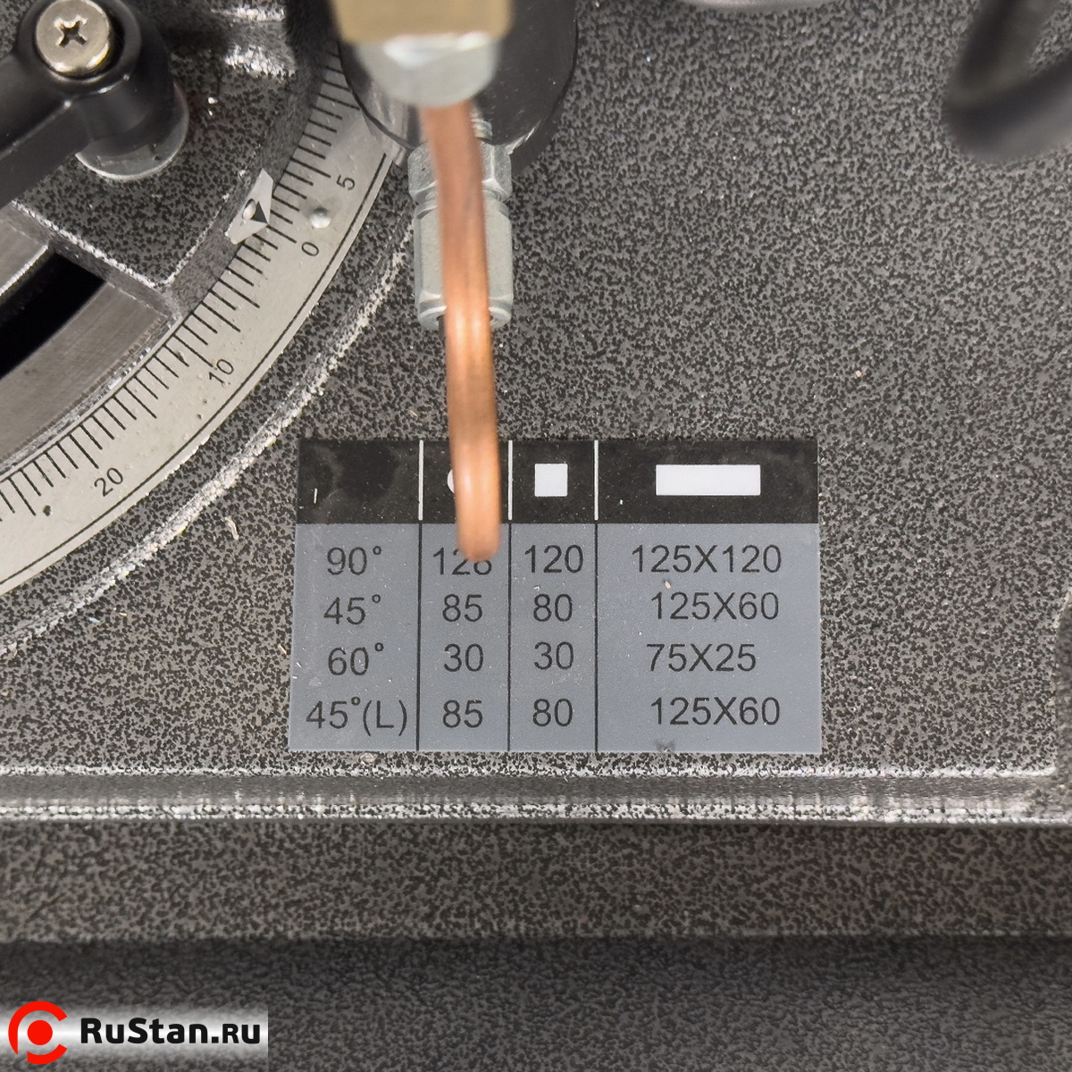 Предусмотрен поворот пильного узла для резки под углами в диапазоне от -60° (влево) до +45° (вправо).
