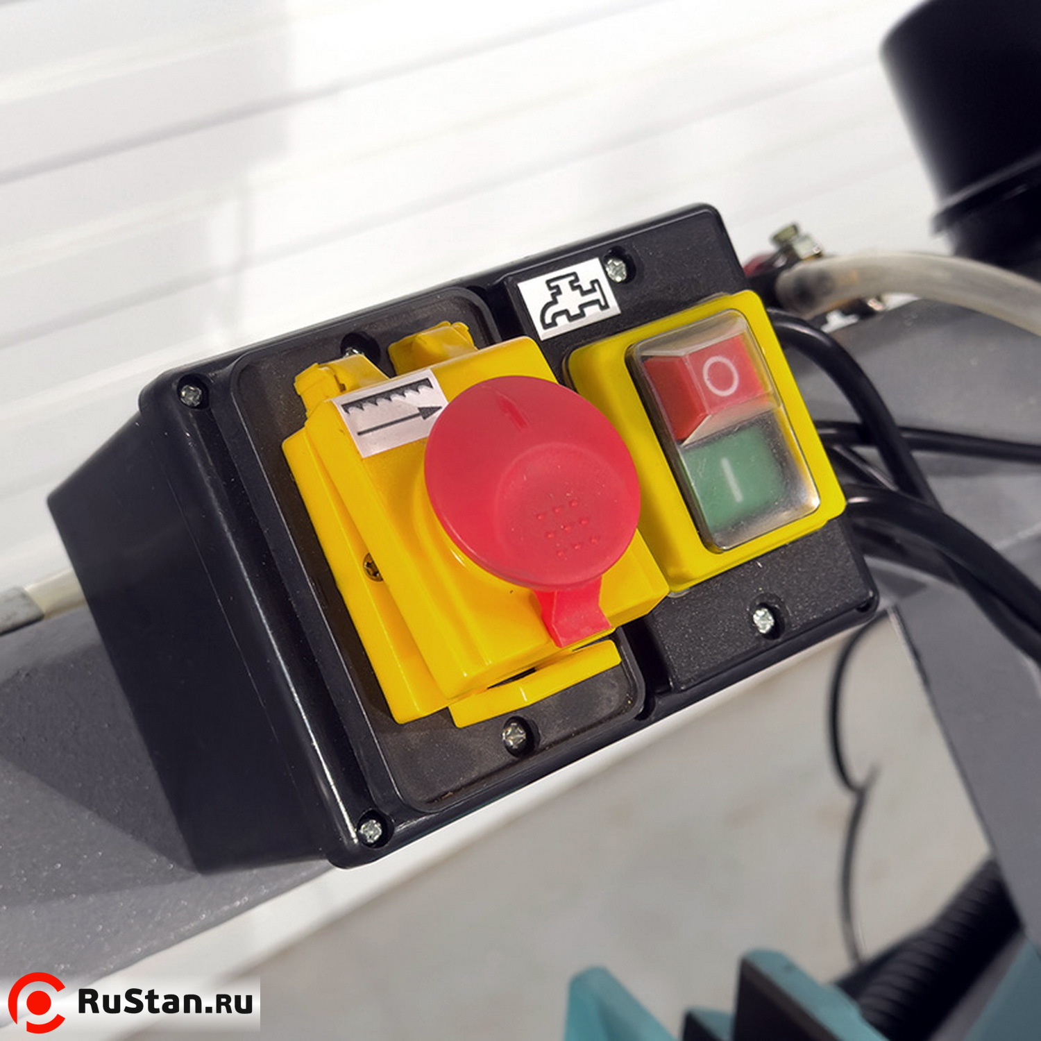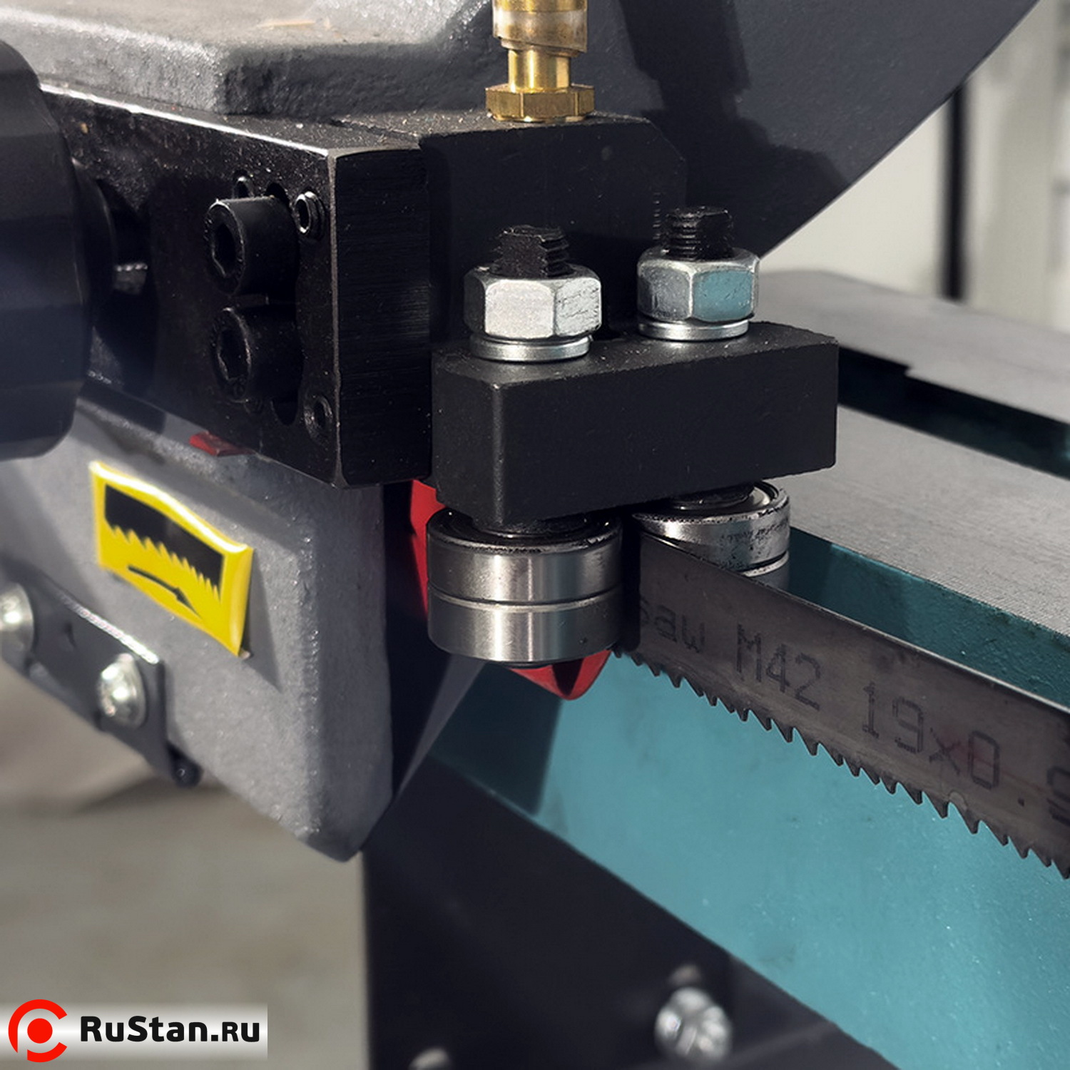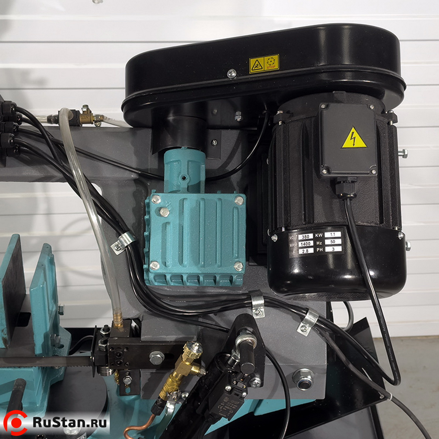 Скорость опускания пильной рамы можно регулировать гидроцилиндром. Модель оснащена системой подачи в зону резания смазочно-охлаждающей жидкости (СОЖ).