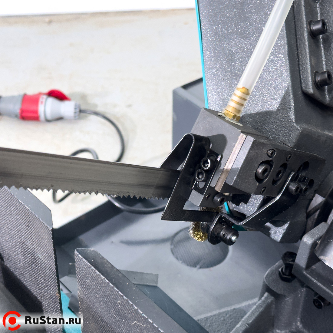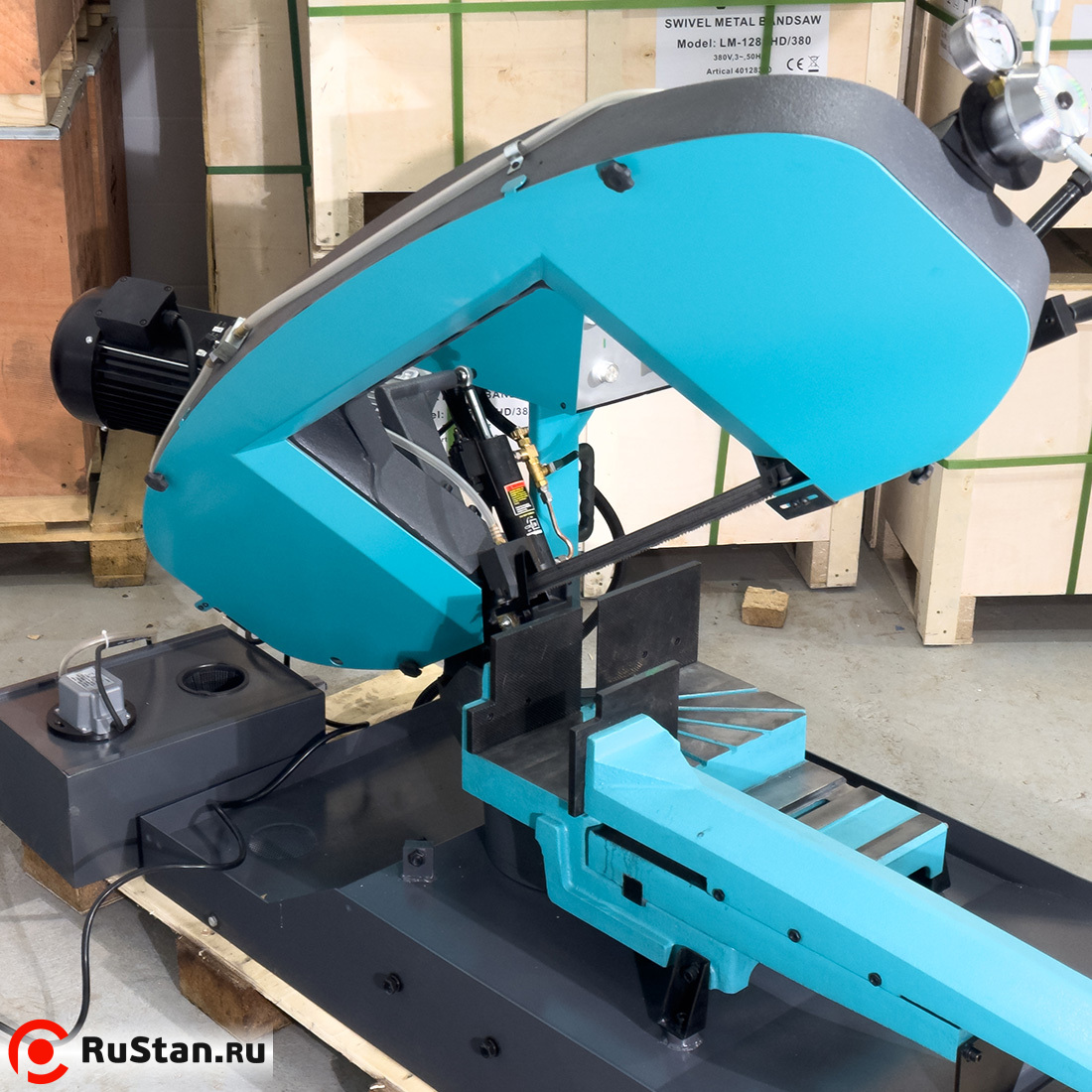 Пила предназначена для резки деталей, максимальный диаметр которых составляет 270 мм. Максимальный размер заготовки прямоугольного сечения при резке под 90° составляет 220 х 370 мм. Станок AURA LM-270 изготовлен из чугунных деталей с металлическими кожухами. Эта комбинация материалов обеспечивает достаточную жесткость конструкции станка даже при максимальном размере реза. Пильную раму пилы можно установить для резки под углом от -45°до +45°. Пильная лента приводится в действие трёхфазным двигателем через редуктор. Напряжение питания станка 380 В. Скорость опускания пильной рамы можно регулировать гидроцилиндром. Модель оснащена системой подачи в зону резания смазочно-охлаждающей жидкости (СОЖ). Данное оборудование используется на мелкосерийном и серийном производстве. Станок комплектуется большим основанием-тумбой, обеспечивающим устойчивость. Размер ленточного полотна 27 x 0,9 x 3160 мм. Шаг полотна подбирается исходя из разрезаемого материала.