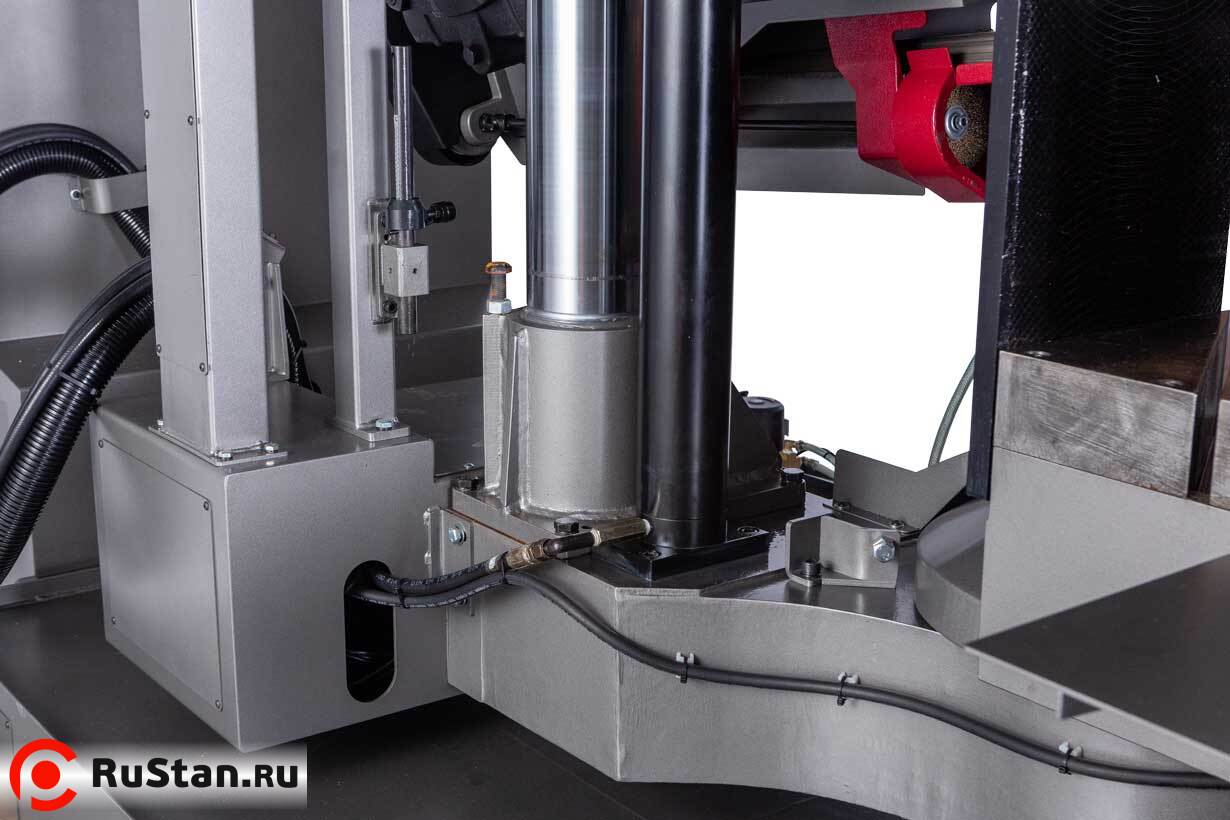 Автоматический поворот пильной рамы с помощью сервопривода в обе стороны на необходимый угол от -45° до +60° позволяет производить точный распил крупногабаритных заготовок.