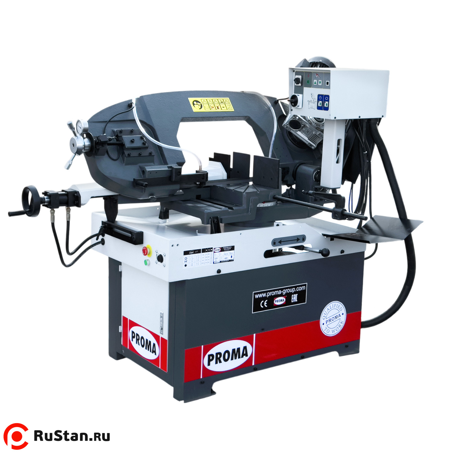 Станок состоит из чугунных деталей с металлическими кожухами. Эта комбинация материалов обеспечивает достаточную жесткость станка при максимальном резе. Пилу можно настроить для резки под углом 90°/60°/+/-45°. Пильная лента приводится в действие трёхфазным двигателем. Опускание пильной рамы регулируется гидроцилиндром. Модель оснащена системой охлаждения СОЖ.