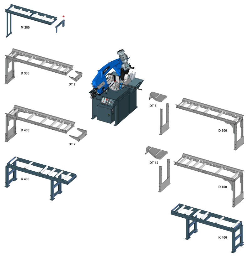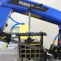 Универсальные тиски обеспечивают пиление под углом от -45° до +60°. Поворотный стол исключает повреждение рабочей поверхности. Современная пильная рама со шкивами увеличенного диаметра снижает нагрузку на полотно, повышает точность и срок службы инструмента. Вся электропроводка и трубки СОЖ скрыты внутри рамы и защищены от повреждений; задний кожух на петлях упрощает обслуживание и замену полотна.