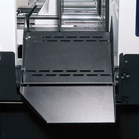 Является продолжением стола станка и позволяет отрезанным заготовкам скатываться в контейнер, когда ведется обработка большой серии. Лоток состоит из 2-х частей, что исключает стекание СОЖ вне станка (заказывается дополнительно).