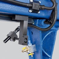 В данной опции дроссельный клапан оборудован дополнительным электрическим клапаном, который остается в заданном положении даже после подъема рамы, что исключает необходимость заново устанавливать нужную вам скорость. Данная опция исключает ошибку с правильной установки скорости резания, увеличивает срок службы ленточного полотна и упрощает работу при пакетной резке. (заказывается дополнительно).