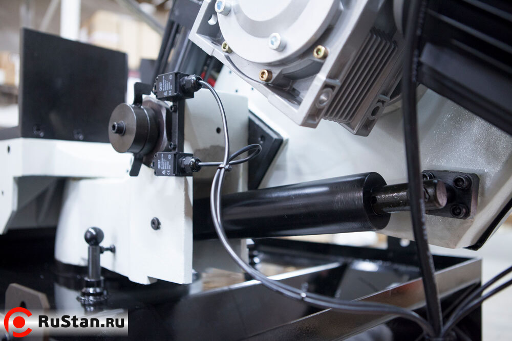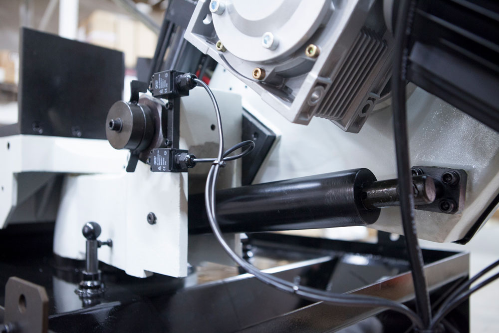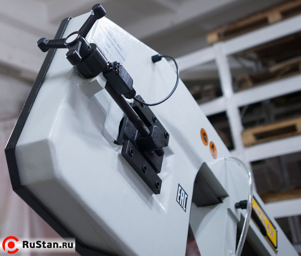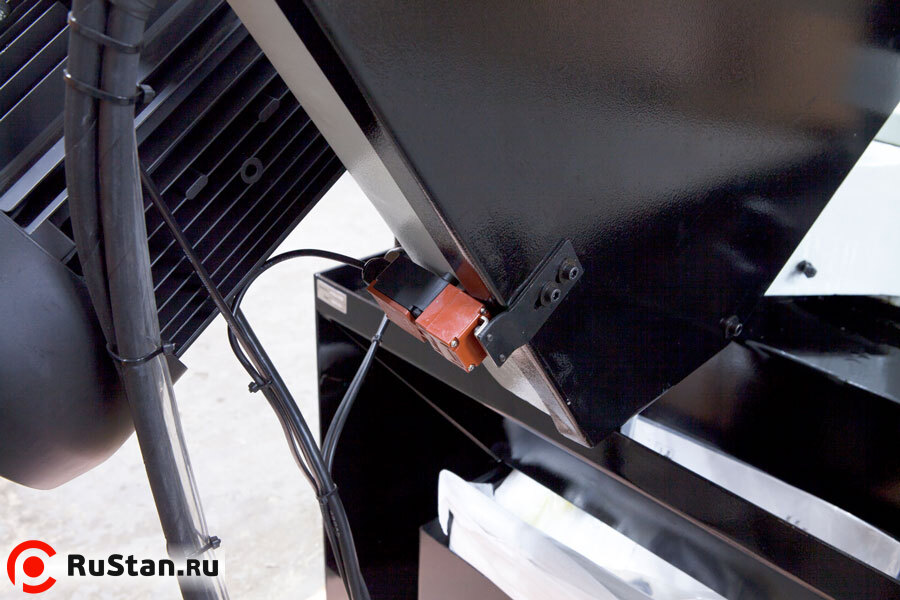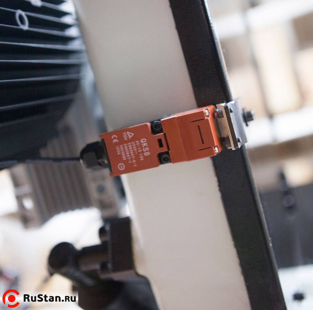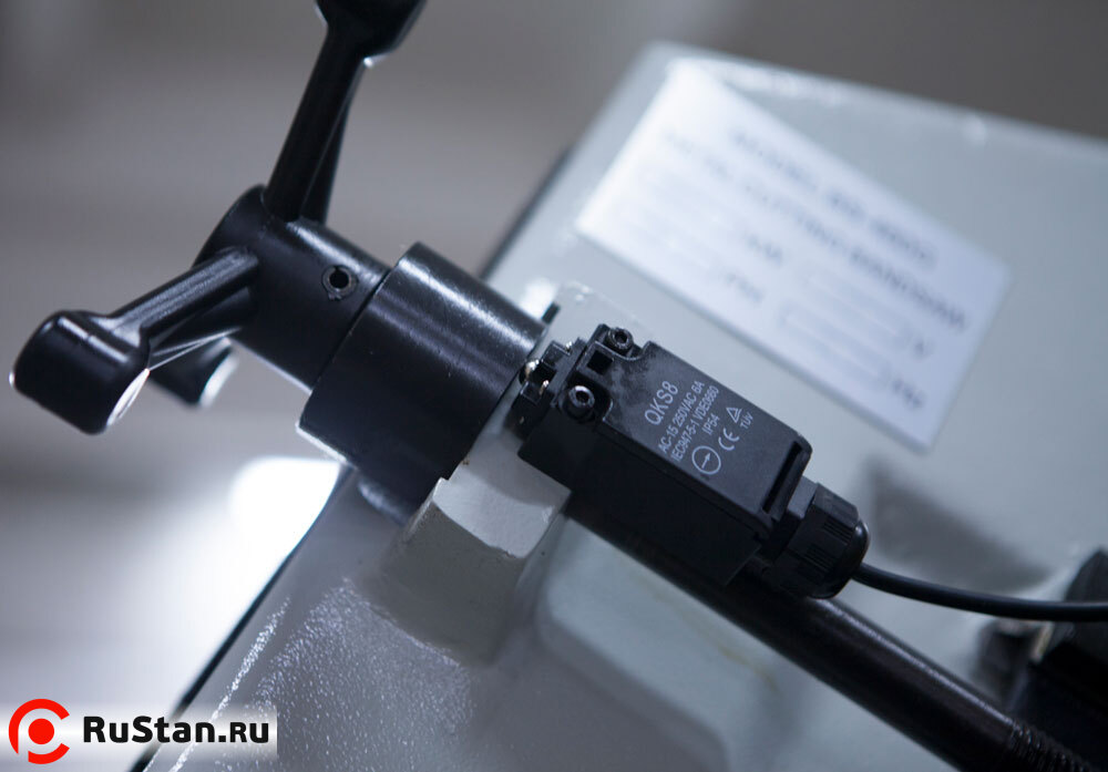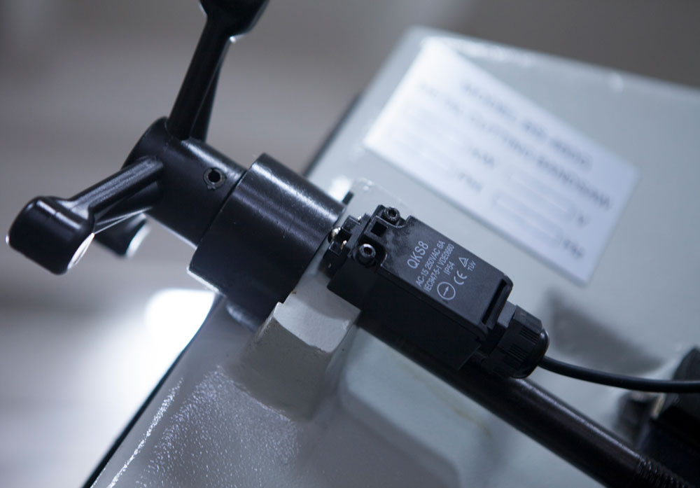- Предохрантельный концевик на кожухе маховика и концевик (под трёх-лучевым маховиком натяжения полотна) для контроля/отключения станка при обрыве полотна (оберегающие станок от поломок в случае если лента повреждена).