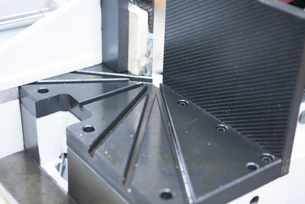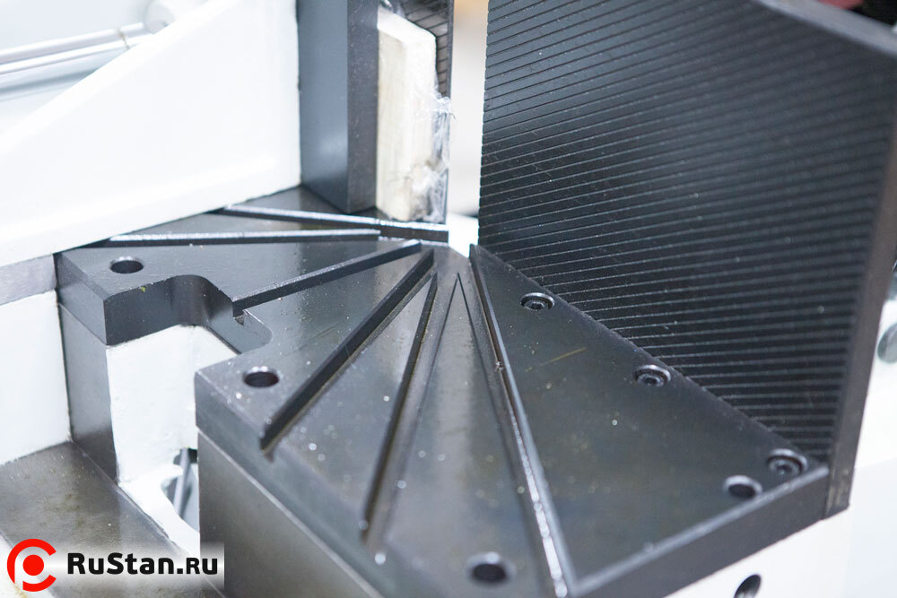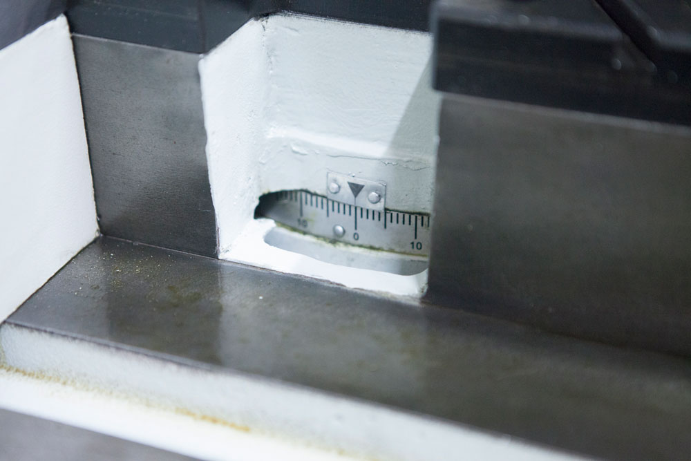 - Точная регулировка полотна позволяет добиться безлюфтового вращения в вертикальной плоскости, за счет конических подшипников и твердосплавных пластин