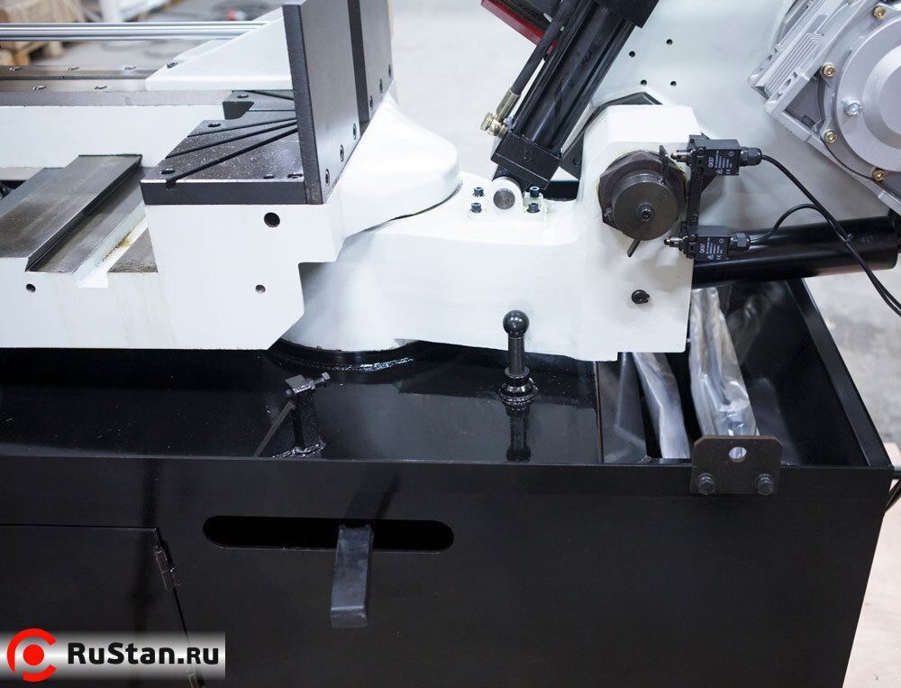 Гидравлические тиски раздвигаются на 460 мм, что позволяет пилить прямоугольною заготовку с размерами, превышающими рабочий просвет подъема пильной рамы.