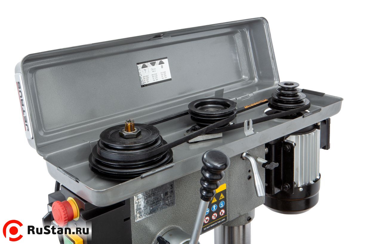 Вращающий момент с двигателя на вал шпинделя передаётся с помощью клинового ремня через шкивную группу. Диапазон частоты вращения шпинделя — от 230 до 2550 об/мин, что обеспечивается 12 скоростями. На передней панели расположен переключатель для включения реверса.