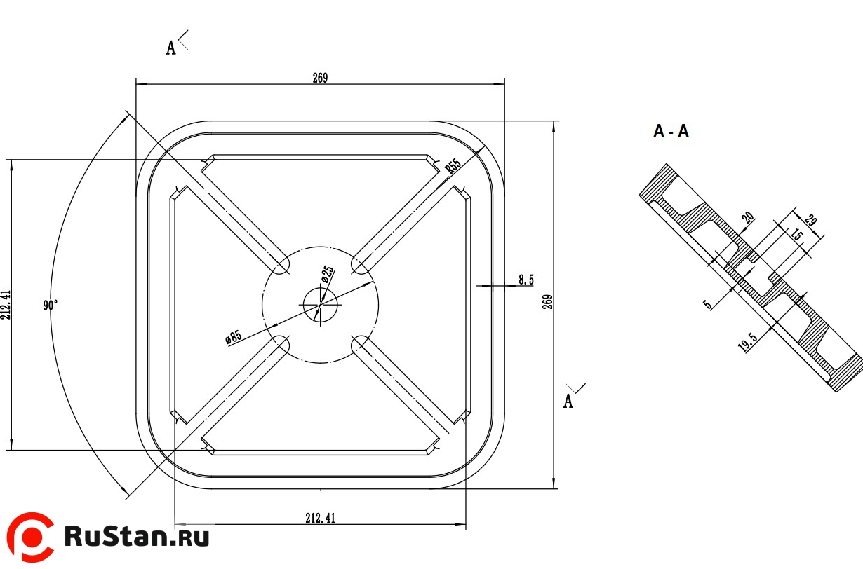 Станок имеет устойчивое чугунное основание размером 520 x 310 мм, с параллельно расположенными пазами шириной 18 мм для закрепления заготовок струбцинами или другими зажимными приспособлениями.
