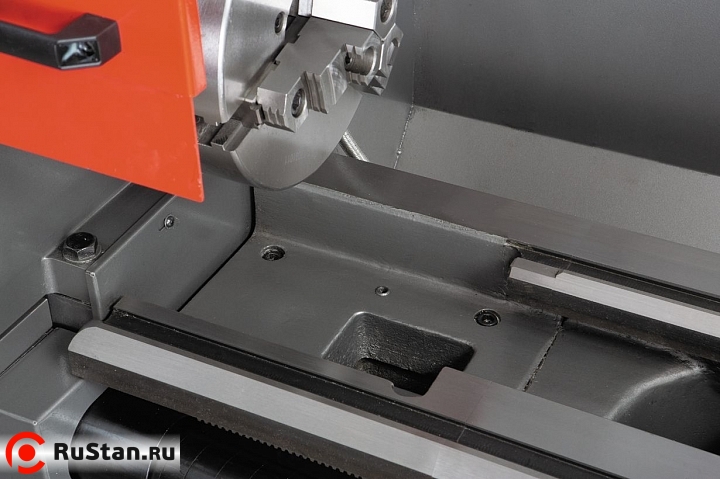 Конструктив GH-1640 ZX DRO имеет облегченное исполнение. Это достигается, прежде всего, за чет снижения металлоемкости станины, направляющие которой закаляются и шлифуются по фирменной технологии. Предусмотрена регулировка зазоров при помощи клиновых планок.