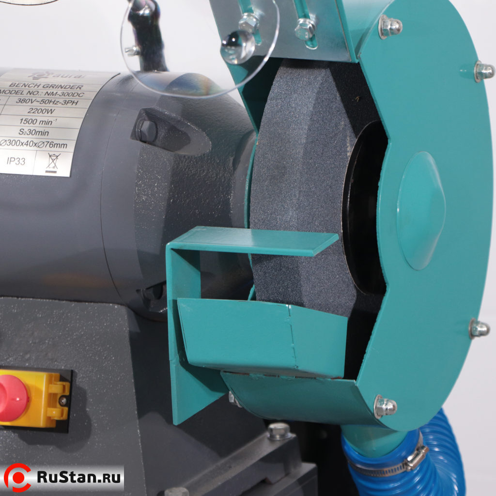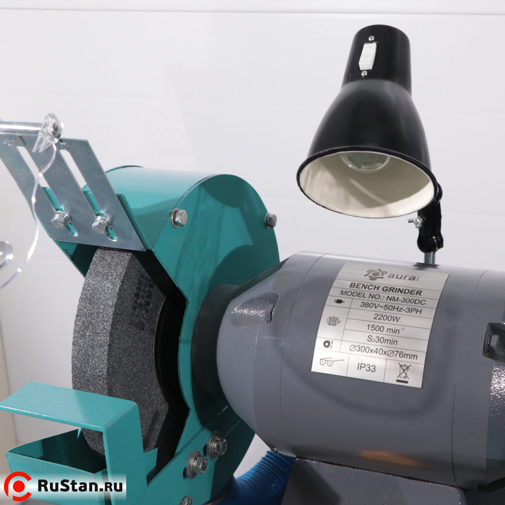Двухдисковый шлифовальный станок с пылесосом AURA NM-300DC оборудован электродвигателем с защитой IP 33 и мощностью – 2.2 кВт . Размер диаметра шлифовального круга – 300 мм. Станок оборудован светильником для освещения рабочей зоны и пылесосом для отвода абразивной пыли и металлической стружки. Шнур с 5-ти пиновой вилкой для подключения к сети 380В обеспечит быстрое подключение оборудования для начала работы.