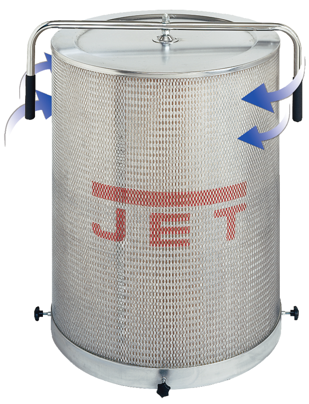 Jet DC-1100CK мощная и производительная вытяжная установка с высокой тонкостью отсева, предназначенная для длительной профессиональной эксплуатации. Модель укомплектована прочной металлической крыльчаткой и спроектирована по технологии Vortex Cone, значительно повышающей общую эффективность. Металлический конус, разделяет объёмы для сепарации и накопления отходов, что способствует очистке воздуха и более плотной «укладке» мусора в накопителе, как результат вытряхивать емкость и фильтр требуется реже. По характеристикам вытяжка DC-1100CK сравнима с более крупными аналогами традиционной конструкции.